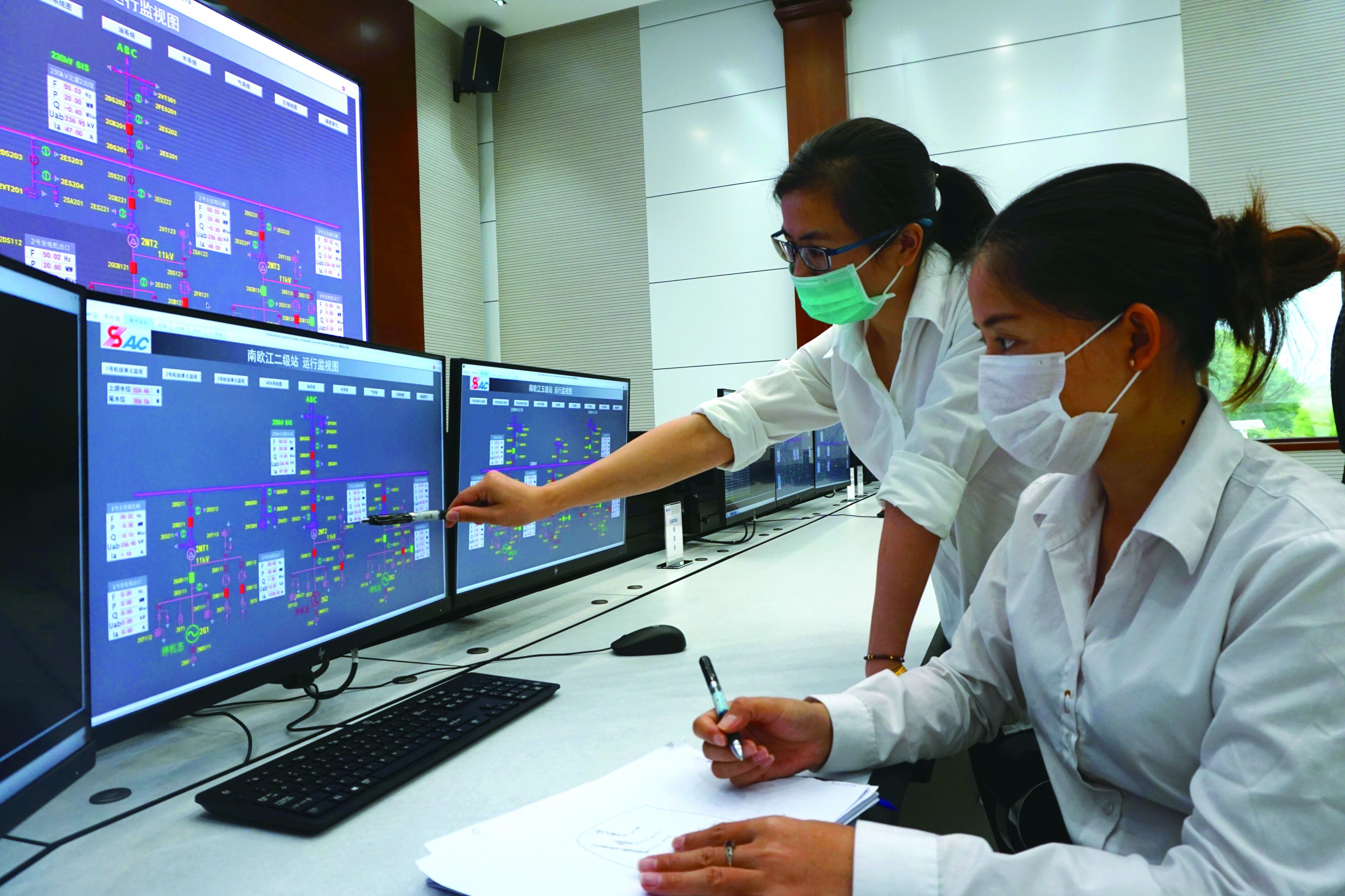 “你好,集控中心彭小婉,请七级电站无压合230kV II回线路断路器7CB202对230kV I回母线充电,完毕!”在老挝目前自动化、信息化程度最高的集中控制运行中心里,主值班员老挝籍员工媞佩婉,正有序进行线路送电调度指令下达工作。
