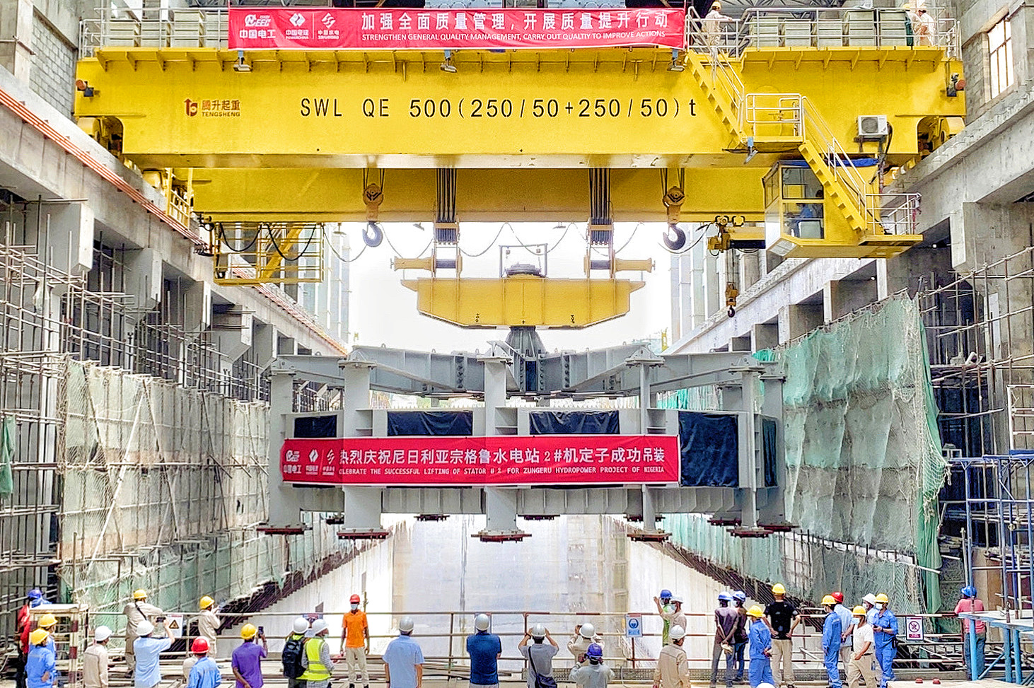 承建的尼日利亚在建最大水电工程——宗格鲁水电站首台机组转子顺利吊入机坑,标志着1号机组安装全面步入总装阶段。转子是水轮发电机的核心部件,也是重量最重、安装难度最大的部件之一。这台转子先后经过6道主要工序,在转子组装过程中,项目部精心施工,严抓质量和安全,顺利完成了转子组装全部工序。