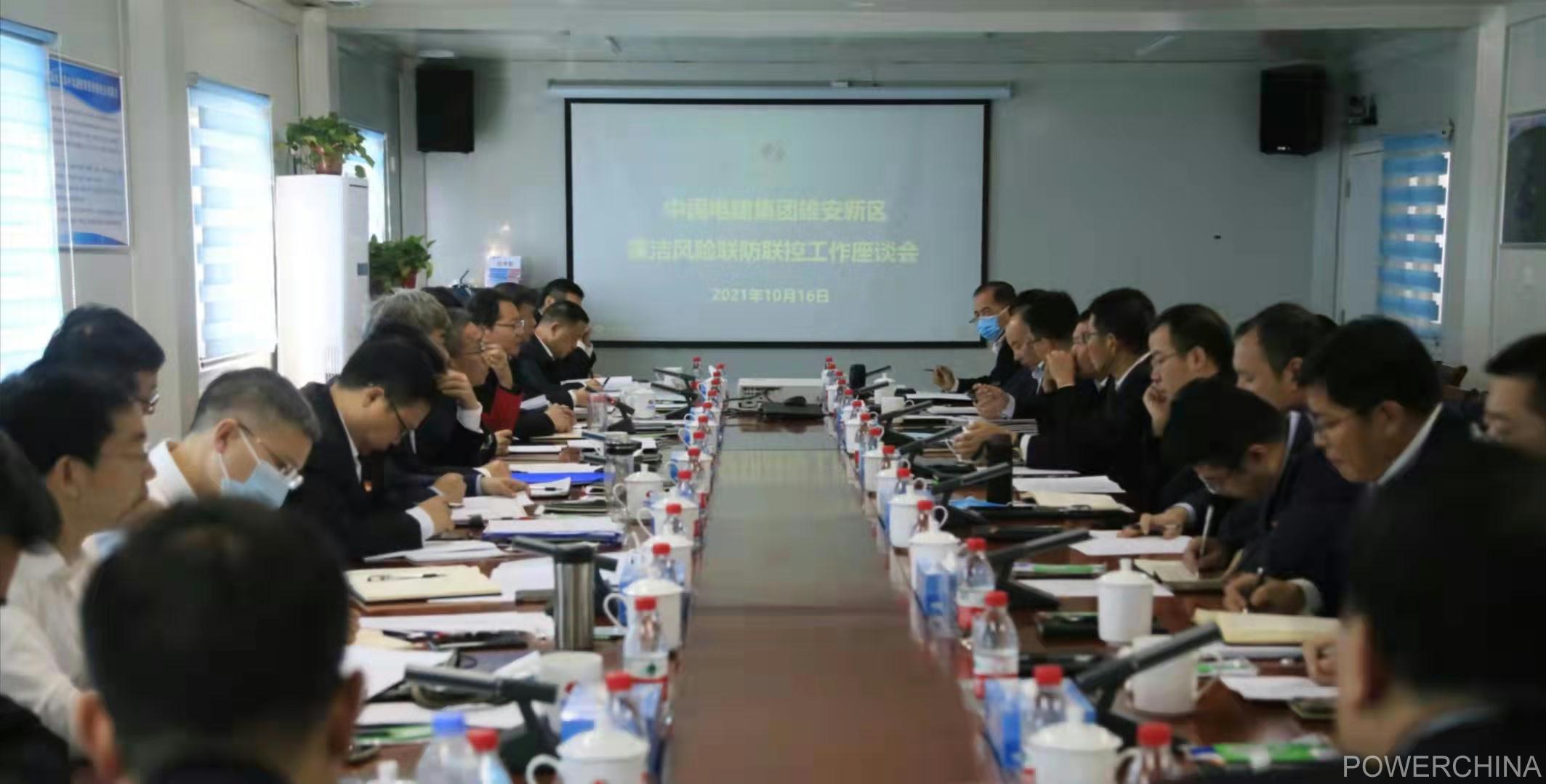 启动仪式后,为做实做细雄安新区项目廉洁风险联防联控工作, 公司纪委于10月16日上午,在雄安调蓄库项目现场召开了雄安新区项目廉洁风险联防联控工作座谈会,要求雄安新区集团参建各单位讲政治、精统筹、快行动、强传导、严监督、实教育,北方区域总部做好统筹协调和组织推动,层层传导压实责任,量化、细化、亮化联防联控措施,切实发挥纪委监督保障执行、促进完善发展作用,共同防范化解各类风险,在助力建设“廉洁雄安”、保障“雄安质量”、推动雄安新区高质量建设中彰显中国电建力量和良好形象。公司纪委相关负责人及北方区域总部和参与雄安新区建设的部分子企业纪委书记、项目党支部书记、项目经理参加了座谈交流。会前,北方区域总部还组织与会人员到雄安·电建智汇城、南水北调中线雄安调蓄库骨料加工系统现场调研。