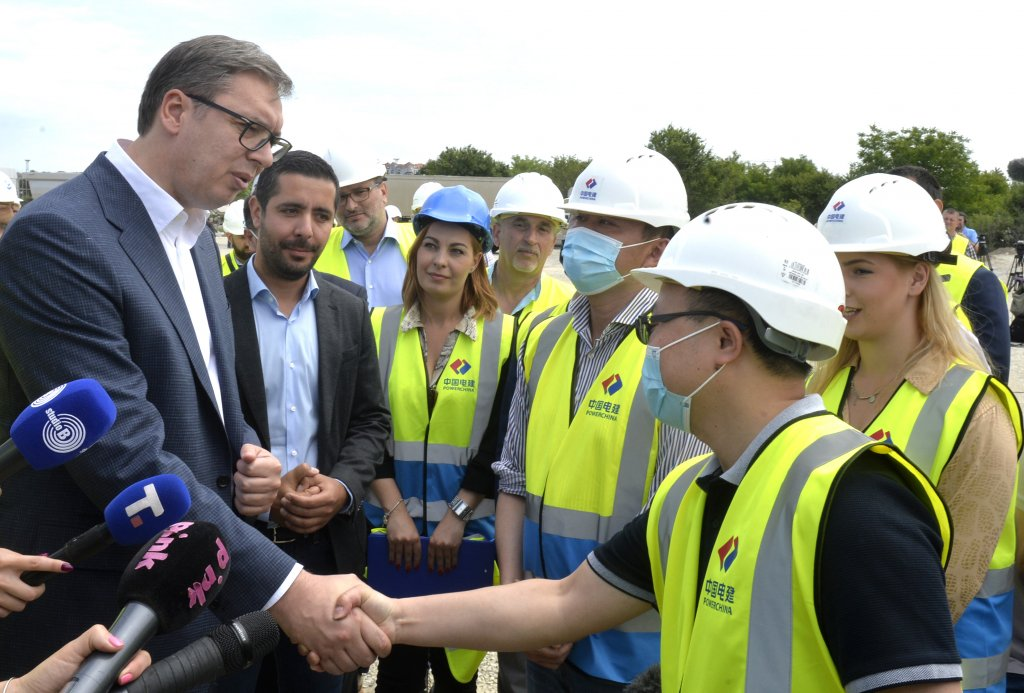 中国驻塞尔维亚使馆临时代办田一澍,塞财政部长西尼萨·马利、中国—中东欧国家合作塞国家协调员西尼萨·马利,法国驻塞大使柯夏尔·巴沙尔等陪同。