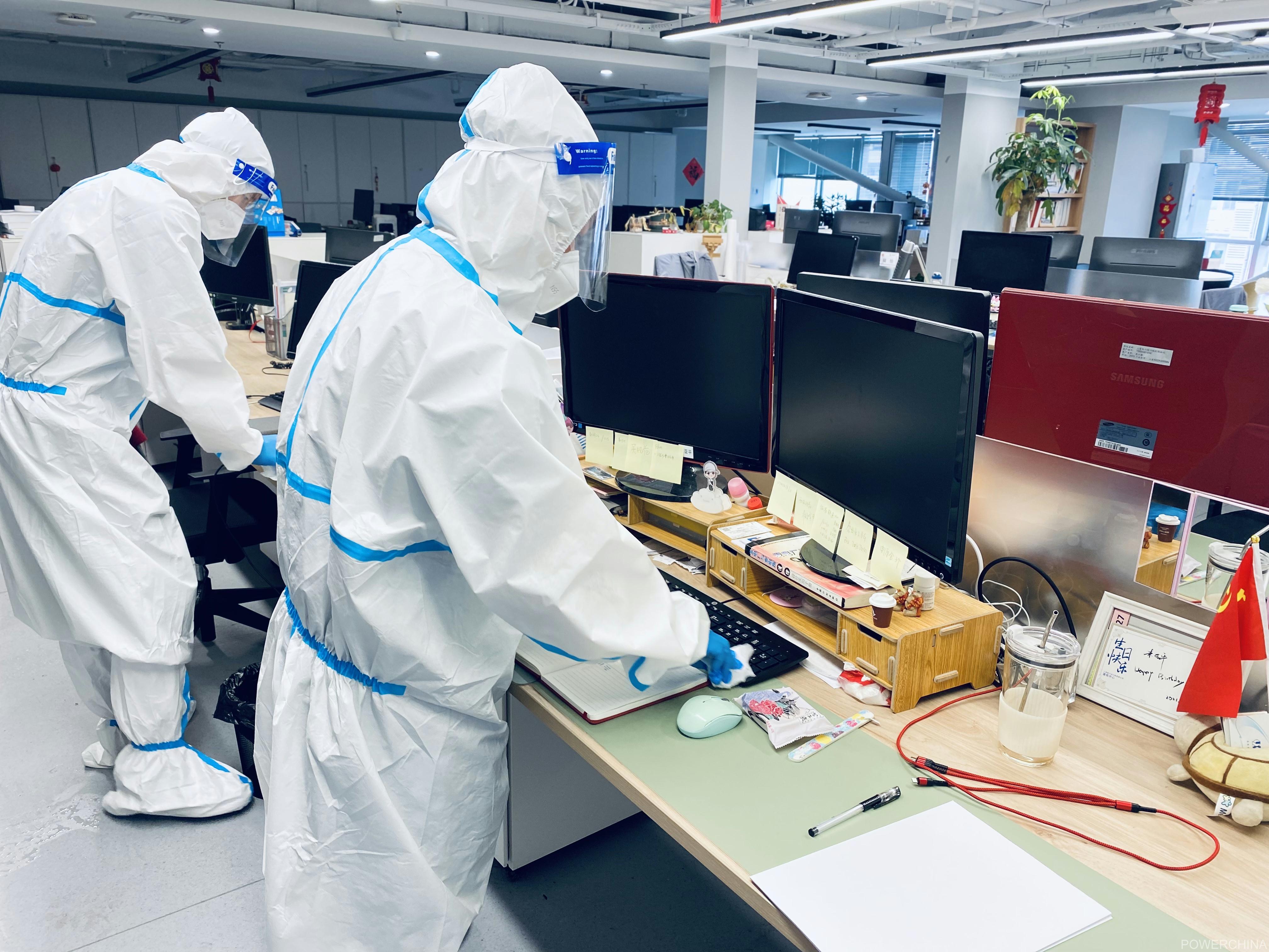 上海院提前谋划,结合黄浦区打浦桥街道管理情况,制定了复工复产返岗工作方案。自6月1日起,采取人员按比例返岗原则开展复工,视疫情防控情况及国家、地方政府政策,逐步分阶段扩大现场返岗人数比例,并结合实际,动态调整出行、工作、防疫等各方面复工安排。为了6月1日广大员工能安心复工,后勤服务团队特地请来“白衣人”,身穿“盔甲”、手持“大炮”,对看不见的“敌人”进行毫不留情的消毒。