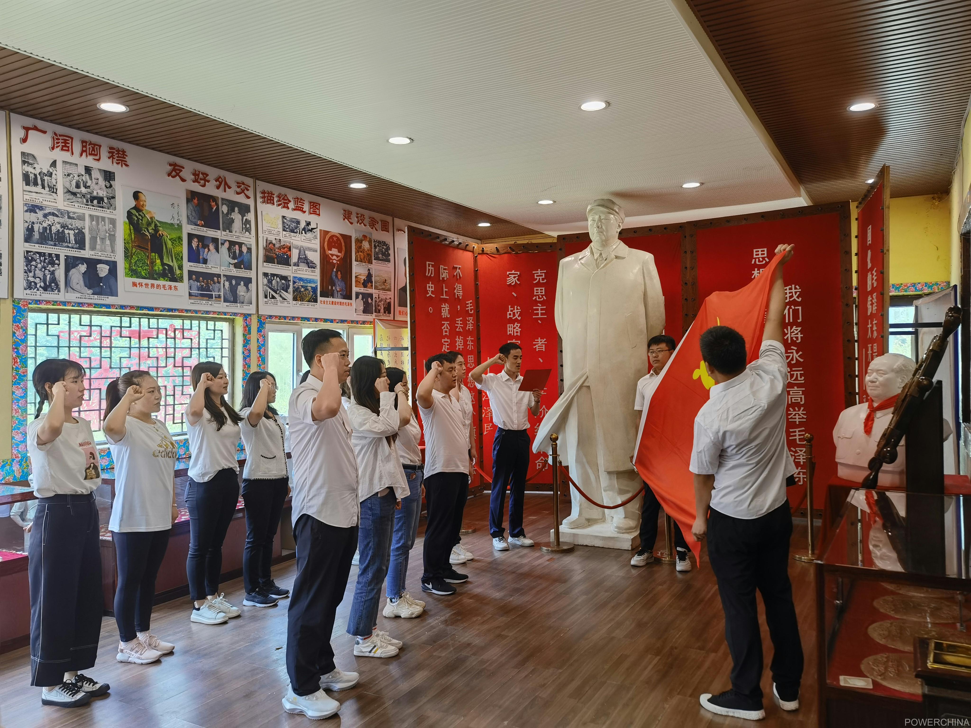 六月的清晨,大山里清新的空气孕育着蓬勃的生机,在中国电建水电七局白鹤滩水电站项目党员活动室,金色阳光洒在宣誓墙上,鲜红的党旗被映照的熠熠生辉。