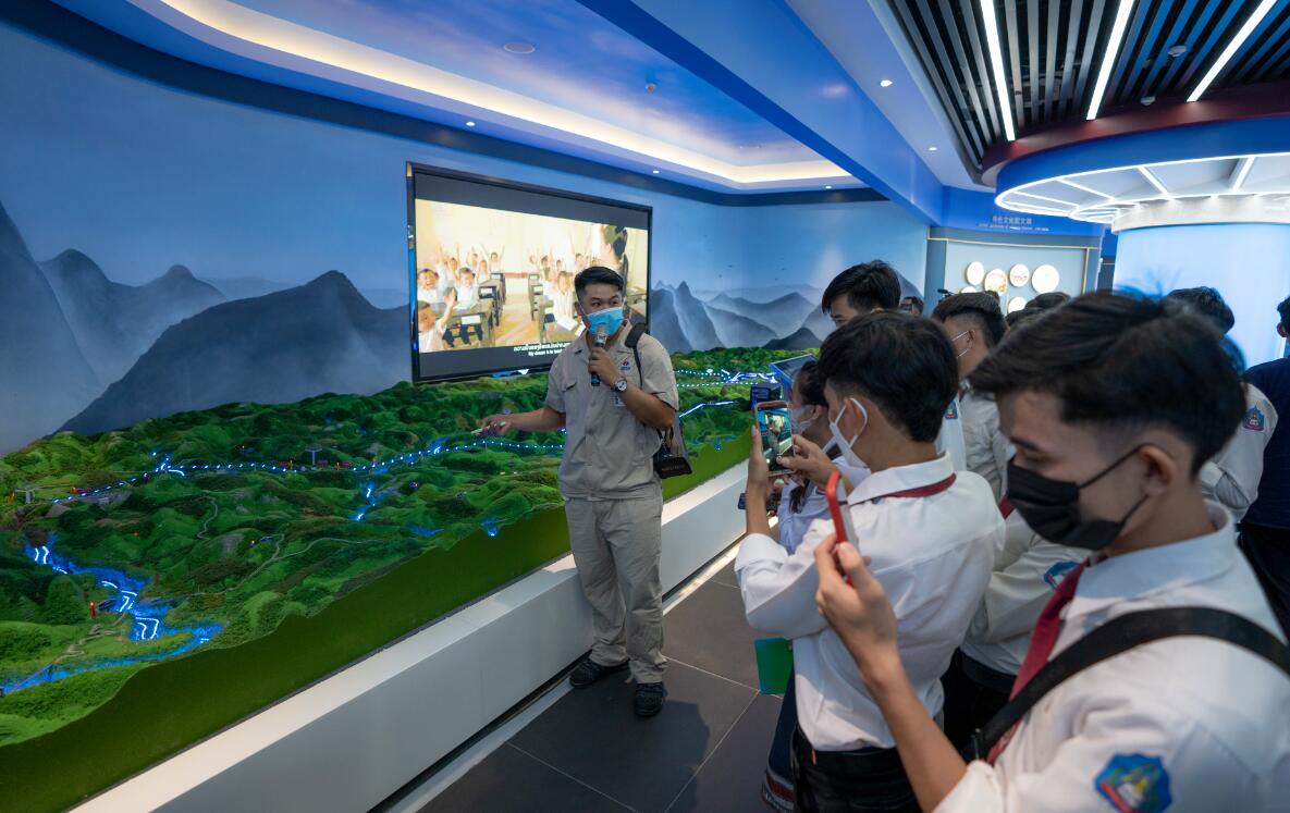 当广大师生和媒体朋友进入厂区,亲眼看到老挝传统风格的电站外观、流域沙盘上七个电站像颗颗明珠般点缀在南欧江上、电站机组转动把南欧江水化成电能输送到千家万户的那一刻,都非常的惊讶和激动,感叹“百闻不如一见”。当得知中国电建为当地建设移民新村、修路架桥、保护库区绿色生态、投身公益事业等做法时,纷纷为POWERCHINA点赞。